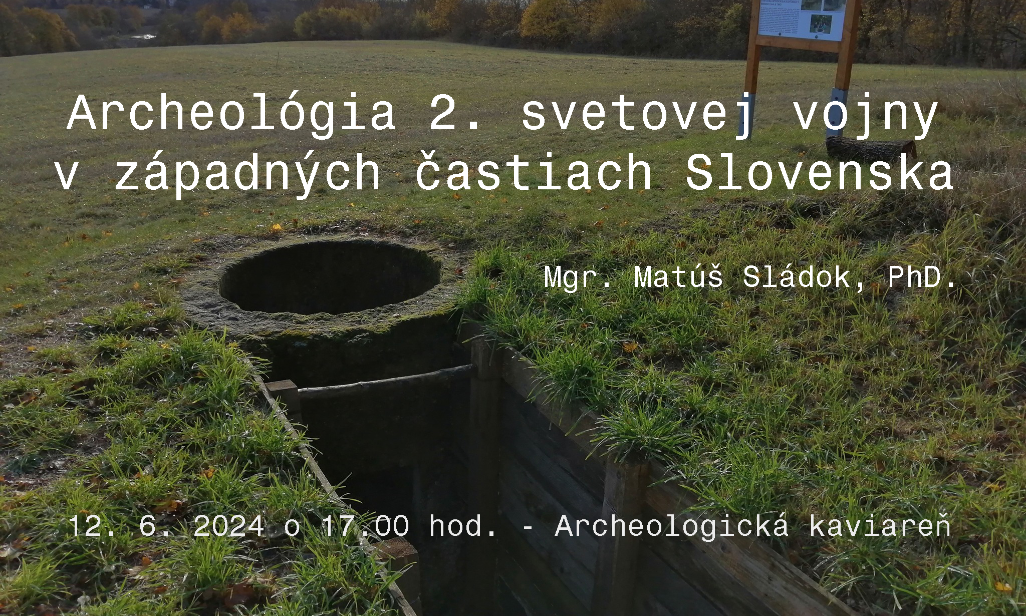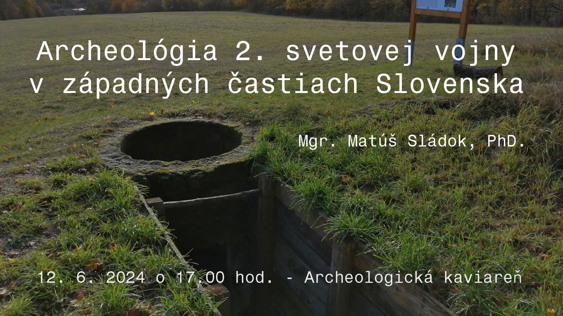 Prednáška Mgr. Matúša Sládka, PhD., z Krajského pamiatkového úradu Trnava, nás prevedie cez počiatky opevňovania, mapy obranných línií, základnú typológiu opevňovacích prvkov, ukáže možnosti diaľkového výskumu opevnení, vybrané výskumy opevnení a ostatkov vojakov a napokon umožní pochopiť škodlivosť amatérskeho detektoringu na konkrétnych príkladoch.
