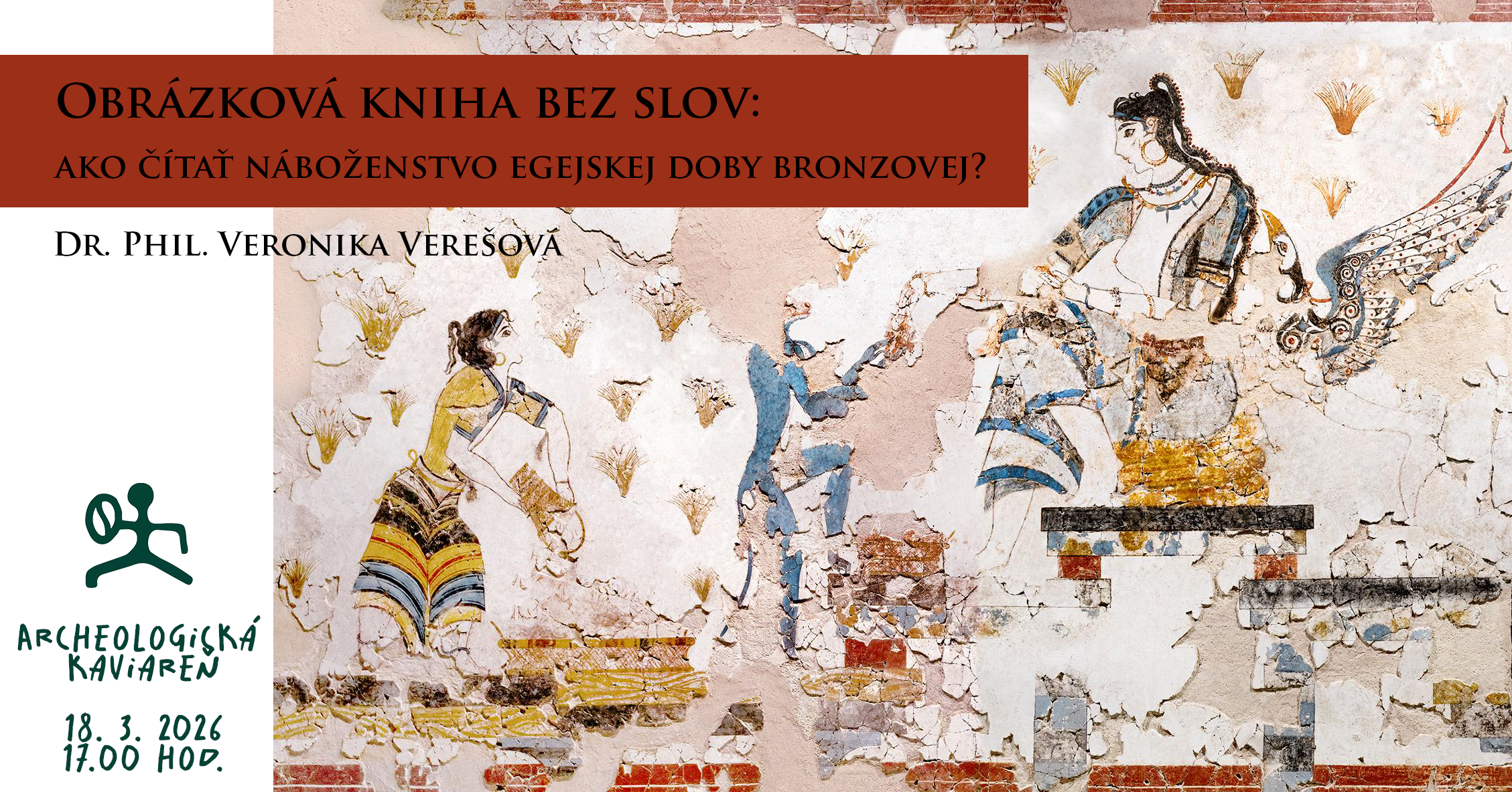 V prednáške sa pozrieme, ako sa s touto záhadou vyrovnávali bádatelia v minulosti a čo sme sa o týchto fascinujúcich ľuďoch a ich predstavách dozvedeli po viac ako sto rokoch bádania. Prednáška ukáže, či je možné túto „obrázkovú knihu bez slov“ naozaj čítať. Dozviete sa, ktoré motívy prišli do Egejdy z Egypta, Sýrie či Anatólie, ako sa menili v novom prostredí a čo prezrádzajú o bohoch, ideológii a moci v egejskom svete. Objavte fascinujúci príbeh obrazov, ktoré odhaľujú prepojený svet východného Stredomoria pred viac než 3 000 rokmi.
